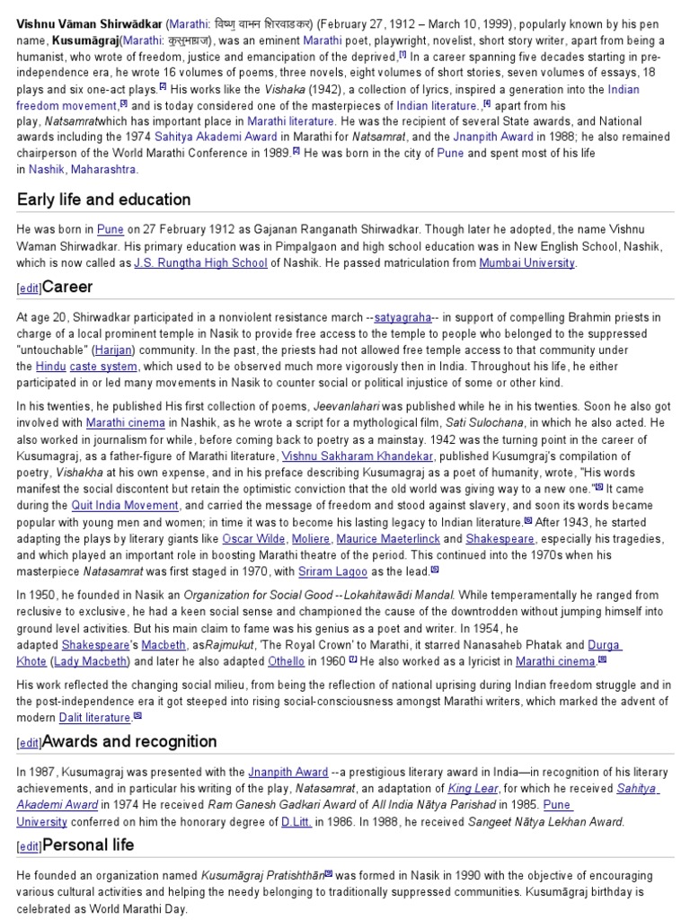 Kusumagraj Poems In English / Here is a list of categorized poems and poetry from the most famous poets and authors of the world. Kusumagraj Poems In English : At poemsearcher.com find thousands of poems categorized into thousands of categories.
